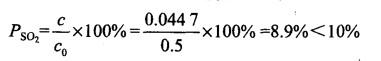 由于烟囱高度为14m,小于上述标准规定的烟囱最低高度15m的要求,因此排放浓度限值严格按50%执行,即TSP排放浓度限值为75mg/m3,SO2排放浓度限值为425mg/m3。排放烟囱风机运行风量27000m3/h,污染物排放源强TSP为0.75g/s,SO2为0.375g/s,计算可得,TSP排放浓度为100mg/m3,SO2排放浓度为50mg/m3。因此,SO2可达标排放,TSP超标。