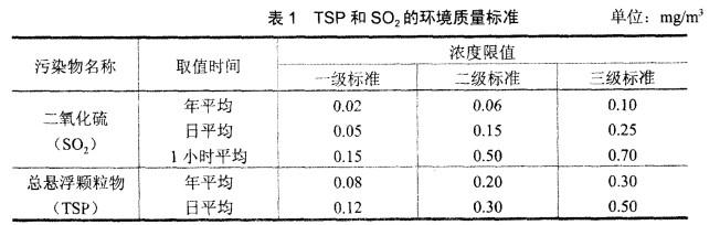 TSP和SO2的环境质量标准见表1。