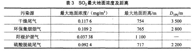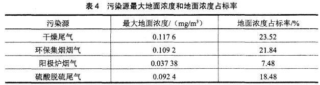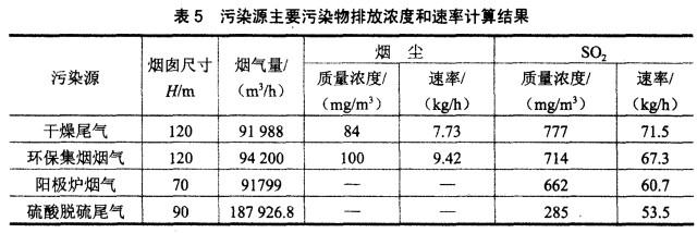 根据《大气污染物综合排放标准》(GB16297—1996)二级标准,SO2最高允许排放浓度为960mg/m3,排气筒高度为90m,最高允许排放速率为130kg/h;颗粒物最高允许排放浓度为120mg/m3,排气筒高度为70m,最高允许排放速率为77kg/h。干燥尾气、硫酸脱硫尾气、阳极炉烟气、环保集烟烟气排放浓度和排放速率均低于《大气污染物综合排放标准》(GB16297-1996)二级标准限值,其烟气均可达标排放。