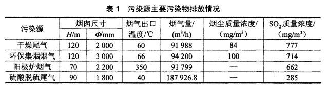 改扩建工程完成后,生产过程中的废气主要来源于干燥尾气、环保集烟烟气、阳极炉烟气、硫酸脱硫尾气(通过环保集烟罩收集闪速炉等冶金炉的泄漏烟气)4个高架排放源。其污染源主要污染物排放情况见表1。