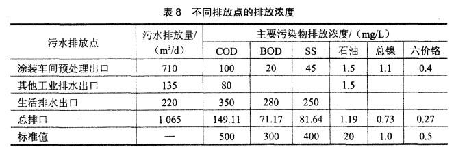 为确保该项目污水达标排放,对COD、BOD5,SS、石油类、镍、六价铬等污染因子均需进行监控。其中镍、六价铬必须在涂装车间预处理后设监测点进行监测,以确保车间口达标;其余的COD、BOD5、SS、石油类等因子可仅在总排口设监测点进行监测;为了解涂装车间预处理效果,也可在涂装车间预处理前后分别设监测点位对各污染因子进行检测,以确定处理效率。