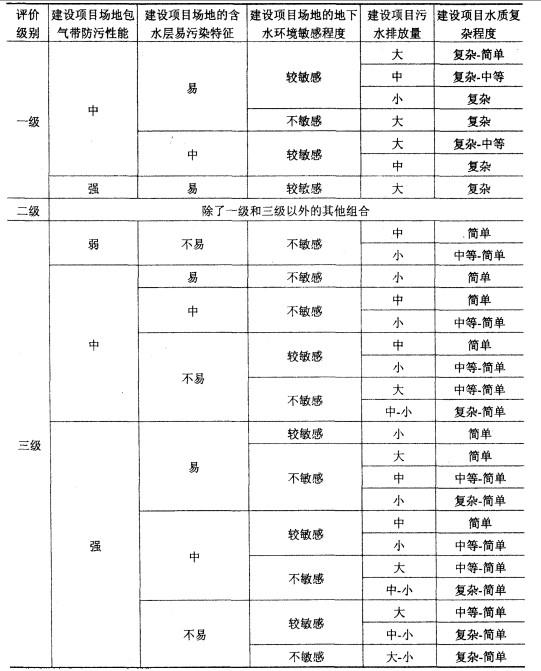 根据不同类型建设项目对地下水环境影响程度与范围的大小,将地下水环填影响评价工作分为一、二、三级。具体分级的原则与判据见第6章。