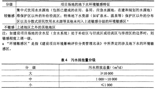 注:如建设项目场地的含水层(含水系统)处于补给区与径流区或径流区与排泄区的边界时,则敏感程度上调一级。