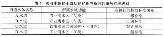 2.答:该项目竣工环境保护验收时,水、声环境采用的验收标准如下:(1)废水排放标准。该项目竣工验收时各公路设施排水均执行《污水综合排放标准》(GB 8978-1996),具体执行的级别见表1。