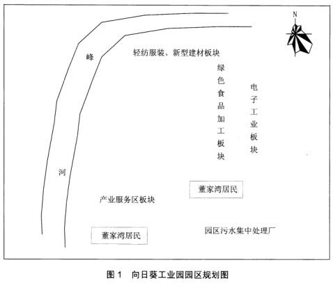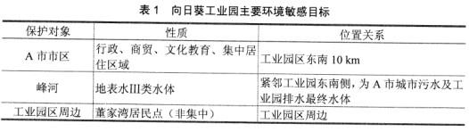 A市拟在本市西北方向10km处建设规划面积为5500亩的“向日葵工业园”,它是经A市所在的B省人民政府批准的省级开发区。该工业园区以绿色食品加工、轻纺服装、机械电子、新型建材与电子加工行业为主导产业。该工业园区规划布局是:北部为轻纺服装、新型建材企业的厂房区;南部主要为产业服务区板块,含工业园管理区、公共服务设施、商业金融、医疗卫生、居住用地等;东部规划为绿色食品加工、电子行业加工区板块。根据工业园规划,入园各企业均自建燃煤锅炉进行供热。详见图1《向日葵工业园园区规划图》。向日葵工业园西北方向2‰处为峰河,该河无划定饮用水源保护区及游泳区。峰河为A市城区排水及向日葵工业园排水最终受纳水体。峰河全长656km,集水面积为45220km2,河段弯曲系数0.68,平均比降为0.3‰。峰河A市段每年高水位期在7~8月,低水位期在12月~翌年2月,常年径流量平均395亿m3,最高径流量654亿m3,最低径流量180亿m3;枯水期段平均流量270m3/s。根据工业园规划内容,向日葵工业园东南向拟建设园区污水集中处理厂,处理规模为2.5万t/d。该工业园所在区域属典型的北亚热带大陆性季风气候,四季分明,光照充足,雨量充沛。A市城市主导风向为ES。园区周边目前有少量分散的董家湾居民点。主要植被为高大茂密的落叶阔叶林和常绿针叶林,其树种主要为水杉、池杉、椿、槐、杨、油茶、南茶、柑橘、乌桕、板栗、梨、柿、桑等。农作物有水稻、小麦、油菜、棉花、芝麻等。向日葵工业园主要环境敏感目标如表1所示。