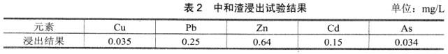 石膏、中和渣。中和渣浸出试验结果见表2。