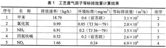 某化学原料药项目选址在某市化工工业区建设,该化工区地处平原地区,主要规划为化工和医药工业区,属于环境功能二类区。区内污水进入一城镇集中二级污水处理厂,处理达标后出水排往R河道,该河道执行地表水Ⅳ类水体功能,属于淮河流域。项目符合国家产业政策,以环己酮、草酸二乙酯为原料,经过酯化、溴化、还原、缩合、精制等工序合成生产降血糖和防治心血管并发症的药物44t/a,年工作300天、7200h。项目主要建设内容有:生产车间一座,占地900m2,冷冻站,循环水站,处理能力100m3/d污水处理站以及废气污染物治理设施等。项目供热由工业区集中供应。项目使用的主要原料有环己酮、草酸二乙酯、甲苯、氯仿、盐酸、液氨、冰醋酸、锌粉等。项目排放的主要废气污染物有:氨、甲苯以及HCl等,其等标排放量见表1。废水排放量90t/d,主要污染物为COD、氨氮、甲苯等。项目排放的固体废物主要是工艺中的釜残和废中间产物等。工业区内进行污染物排放总量控制,工业区分配给该项目的COD和氨氮排放总量分别为20t/a和1.6t/a。