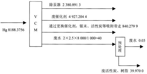 1.给出VCM生产过程中总汞的平衡图。