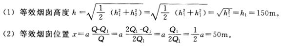 3.两个烟囱的等效烟囱高度为150m,位于两个排气筒连线的中点上、距两个烟囱均为50m。
