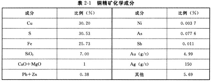 改扩建工程内容包括闪速炉熔炼工序、贫化电炉及渣水淬工序、吹炼工序、电解精炼工序、硫酸工序5个工序的改扩建。扩建改造工程完成后,硫的回收率由95.15%增至95.5%,SO2排放量由2131t/a降至1948t/a,烟尘排放量由139.7t/a降至133t/a,废水排放总量为375.4万t/a,废水中主要污染物Cu、As、Pb。工业水循环率由91.7%增至92.5%。项目年作业天数为340d,每天工作24h。建设项目位于某市工业区内,环境空气质量标准执行二级标准。项目纳污水体为长江,地表水执行Ⅲ类标准。建设项目周围地形特征为丘陵山区。项目原料铜精矿由国外进口,其铜精矿化学成分见表2-1。