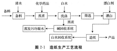 红星造纸公司拟在位于大洪河流域的A市近郊工业园内新建生产规模为15万t/a的化学制浆工程,在距公司20km、大洪河流域附近建设速生丰产原料林基地。项目组成包括:原料林基地、主体工程(制浆和造纸)、辅助工程(碱回收系统、热电站、化学品制备、空压站、机修、白水回收、堆场及仓库)、公用工程(给水站、污水处理站、配电站、消防站、场内外运输、油库、办公楼及职工生活区)。红星公司年工作时间为340d,三班四运转制,其主要生产工艺流程见图2-1。