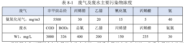 1.参考答案: 《危险废物焚烧污染控制标准》。 2.参考答案: 非甲烷总烃、丙烯腈、乙腈、丙烯醛 3.参考答案: 不合适。 废水中BOD5/COD=0. 11,小于0.3,可生化性差,不适宜好氧生物氧化法处理;废水中总氰浓度较高,对微生物具有毒害作用。 4.参考答案: 合适。 氨氧化尾气中主要含非甲烷总烃,浓度较高,可燃;不含硫化物和卤代烃等造成催化剂中毒的杂质 5.参考答案: 不合适 本项目大气环境评价等级为二级,至少布6 个点;以监测季(冬季)主导风向(西北风) 为轴向,取上风向为0°,在0° 、90° 、180°、270°各布置一个点,下风向加密;本项目布点A、C、F 村合理,E、I 村布点不合理,考虑下风向加密,B 村也应布点。