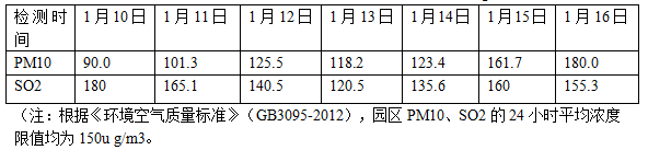 表2-1区域1测点PM10,二氧化硫24小时平均浓度检测结果单位:ug/m3