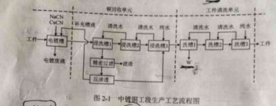 扩建电镀车间,新增1条镀锘生产线,采用多级除渣、预镀锘、中镀铜、终镀锘复合工艺,其中,中镀铜工段生产工艺如图2-1所示,所用物料有氧化钠、氧化亚铜等。