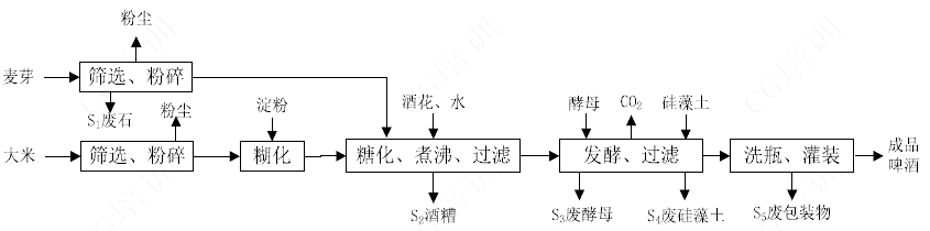 拟在工业园区内新年产1.O×10^5kL啤酒厂项目,建设被容包括原料处理车间、糖化革间、发酵幸间、包装革间、CO2回收幸间、制冷车间、制水车间、锅炉房、污水处理站、原料立仓、瓶箱堆场及办公辅助用房。项目预计2017年10月投产。项目以太米、麦芽、键粉为主要原料,经糊化、糖化、发醉等工艺生产成品啤酒,生产工艺见图