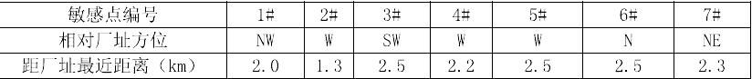 拟建厂址位于化工园区的西北部,当地冬季NW、川、阳风频合计大于30'元。经调查,化工园区外评价范围内有7个环境空气敏感点〈见表>。