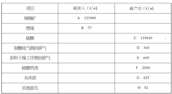 3.列出下列硫平衡表中字母代表的具体数值。