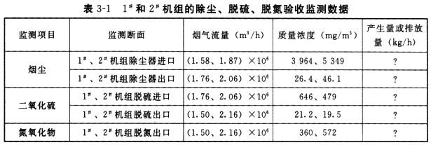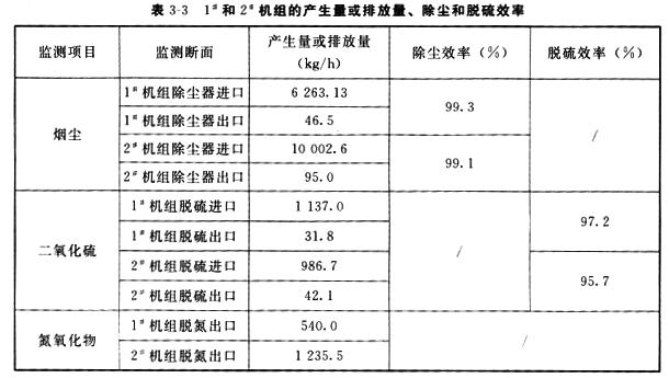 (2)1#和2#机组的产生量或排放量、除尘和脱硫效率见表3-3。