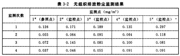无组织排放源主要是堆煤场及装卸、输送过程中产生的煤粉。项目采用全封闭式输煤系统。验收监测时,在煤场设置1个参照点和4个监控点,监测数据见表3-2。