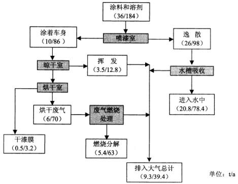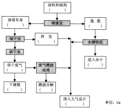1.请在下图括号填入甲苯、二甲苯量,做出涂装工序的甲苯、二甲苯平衡(填写方式按照甲苯/二甲苯)。