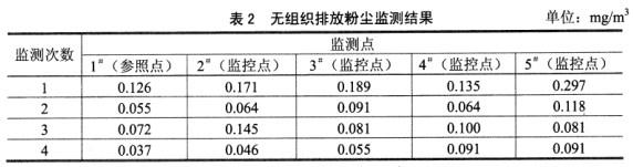 无组织排放源主要是堆煤场及装卸、输送过程中产生的煤粉。项目采用全封闭式输煤系统。验收监测时,在煤场设置1个参照点和4个监控点,监测数据如表2所示。