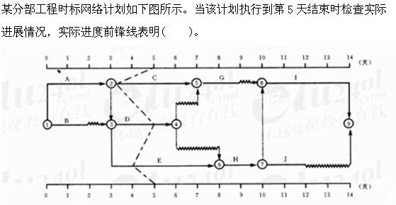 A.工作C实际进度拖后,但不影响总工期