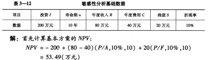 某项目进行方案的敏感性分析,其基础数据见表3-12。