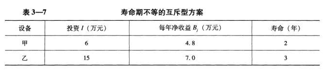 某公司拟采购一套设备,有甲、乙两种型号可供选择,其投资及收益的现金流见表3-7。若公司有吸引力的最低投资收益率为10%。