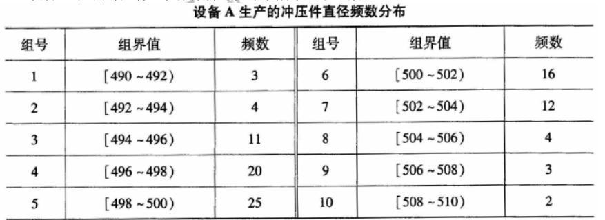 设备A生产的冲压件直径频数分布如下表所示(取组数K=10)。