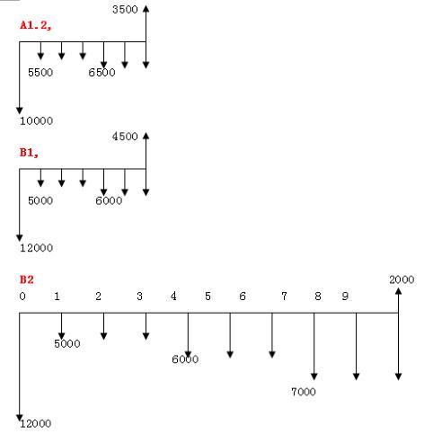 某车间可从A、B两种新设备中选择一种来更换现有旧设备。设备A使用寿命期为6年, 设备投资10000万元,年经营成本前三年均为5500万元,后三年均为6500万元,期末净残值为3500万元。设备B使用寿命期为6年,设备投资12000万元,年经营成本前三年均为5000万元,后三年均为6000万元,期末净残值为4500万元。该项目投资财务基准收益率为15%。 问题: