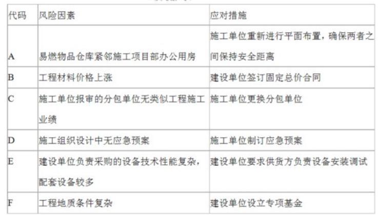 事件3:针对该工程的风险因素,项目监理机构综合考虑风险回避、风险转移、损失控制、风险自留四种对策,提出了相应的应对措施,见下表。