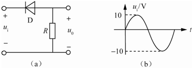 二极管应用电路如图(a)所示,电路的激励Ui如图(b)所示,设二极管为理想器件,则电路的输出电压uo的平均值Uo=( )。