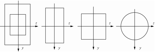 <p>梁的横截面可选用图示空心矩形、矩形、正方形和圆形四种之一,假设四种截面的面积均相等,载荷作用方向铅垂向下,承载能力最大的截