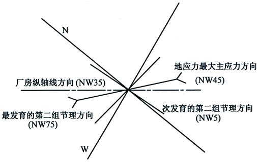 D.厂房纵轴线布置没有注意兼顾两组节理结构面对厂房侧壁岩体稳定的影响方面