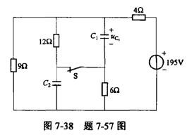 <p>如图7-38所示电路原已稳定,t=0时断开开关S,则uC1(0+)为()V。 <img alt="" src="http