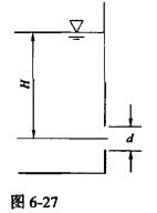 图6-27中,水箱侧壁开一圆形薄壁孔口,直径d=5cm,水面恒定,孔口中心到水面的高度H=4.0m,已知孔口的流速系数φ=0.98收缩系数ε=0.62,孔口出流的流量Q为()L/s。
