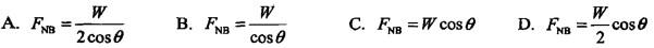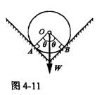 如图4-11所示,重力为W的圆球置于光滑的斜槽内,右侧斜面对球的约束力FNB的大小为()