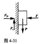 已知图4-31所示重物重力的大小P=100N,用F=500N的压力压在一铅直面上。其摩擦因数fs=0.3,则重物受到的摩擦力为()