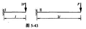 如图5-43所示,两根材料相同、弯曲刚度相同的悬臂梁I、II如图示,正确结论为()