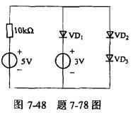 二极管电路如图7-48所示,三个二极管的正向压降均为0.7V,它们的工作状态是()。