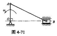 如图4-71所示曲柄连杆机构中,OA=r,AB=2r,OA、AB及滑块B质量均为m,曲柄以ω的角速度绕O轴转动,则此时系统的动能为()