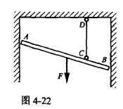 图4-22中,均质杆AB重力为F,用铅垂绳CD吊在天花板上, A、B两端分别靠在光滑的铅垂墙面上,则 A、B两端约束力的大小是() A.