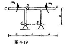 图4-19所示三铰支架上作用两个转向相反、大小相等且不为零的力偶m1和m2,支架自重不计。则支座B的约束力为() A.FB=0 B.FB的作用线沿水平方向