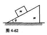 如图4-62所示质量为m的三角形物块,其倾斜角为θ,可在光滑的水平地面上运动。质量为m的矩形物块又沿斜面运动。两块间也是光滑的。该系统的动力学特征(动量、动量矩、机械能)有守恒情形的数量为()