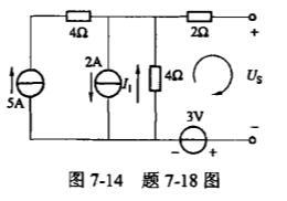 <p>如图7-14所示电路的戴维南等效电路参数US和RS各为下列何值?() <img alt="" src="https://