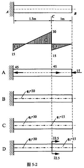 己知图5-2所示等直杆的轴力图(FN图、图中集中荷载单位为kN,分布荷载单位为kN/m)。则该杆相应的荷载如下列选项正确为()