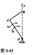 直角刚杆OAB可绕固定轴O在图示平面内转动,己知OA=40cm,AB=30cm,ω=2rad/s,α=1rad/s2,则图4-43所示瞬时,B点加速度在y方向的投影为()cm/s2。