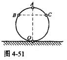 如图4-51所示,有一圆轮沿地面作无滑动滚动,点O为圆轮与地面接触点,点A为最高点,点 B、C在同一水平线位置,以下关于轮缘上各点大小的结论中错误的是()。