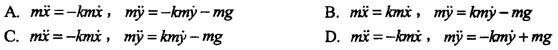 质量为m的物体自高H处水平抛出,运动中受到与速度一次方成正比的空气阻力FR作用,FR=-kmv,k为常数。则其运动微分方程为()