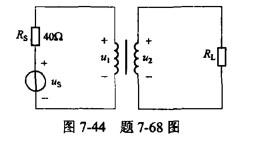 在信号源(us,RS)和电阻RL之间接入一个理想变压器,如图7-44所示,若uS=80sinωtV,RL=10Ω,且此时信号源输出功率最大,那么,变压器的输出电压u2等于()。